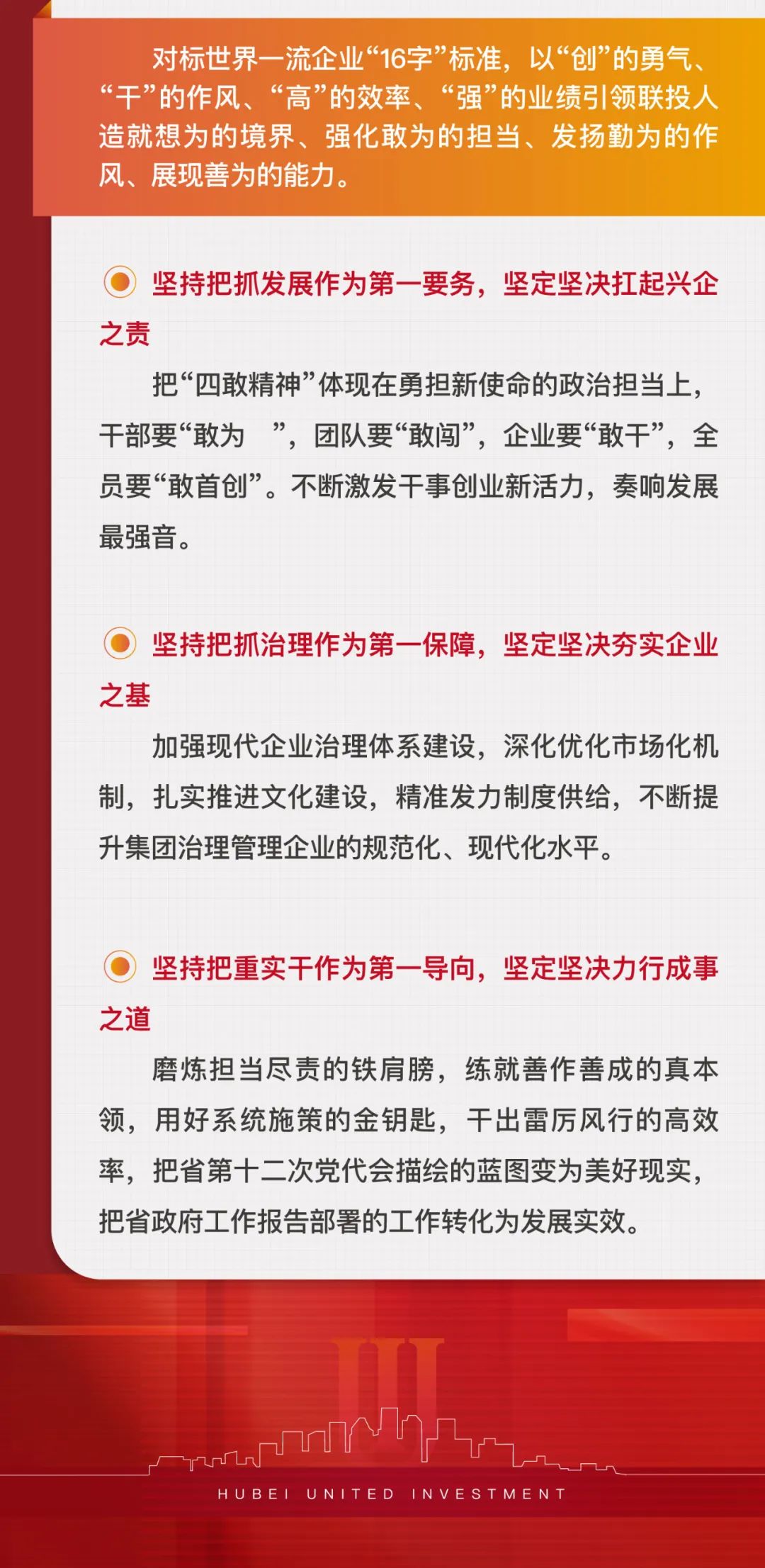 2023年是湖北聯(lián)投建設世界一流企業(yè)的首戰(zhàn)之年,要以建功“先行區(qū)”的政治自覺和爭當“先行軍”的行動自覺,奮力開啟聯(lián)投“二次創(chuàng)業(yè)”新征程,譜寫創(chuàng)建一流企業(yè)新篇章!